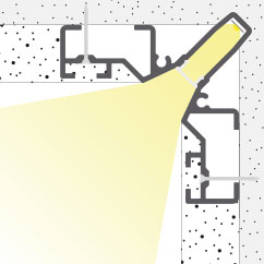 Profili in alluminio estruso anodizzato a filo cartongesso angolare, ideali per l’installazione e raffreddamento delle strip a LED.