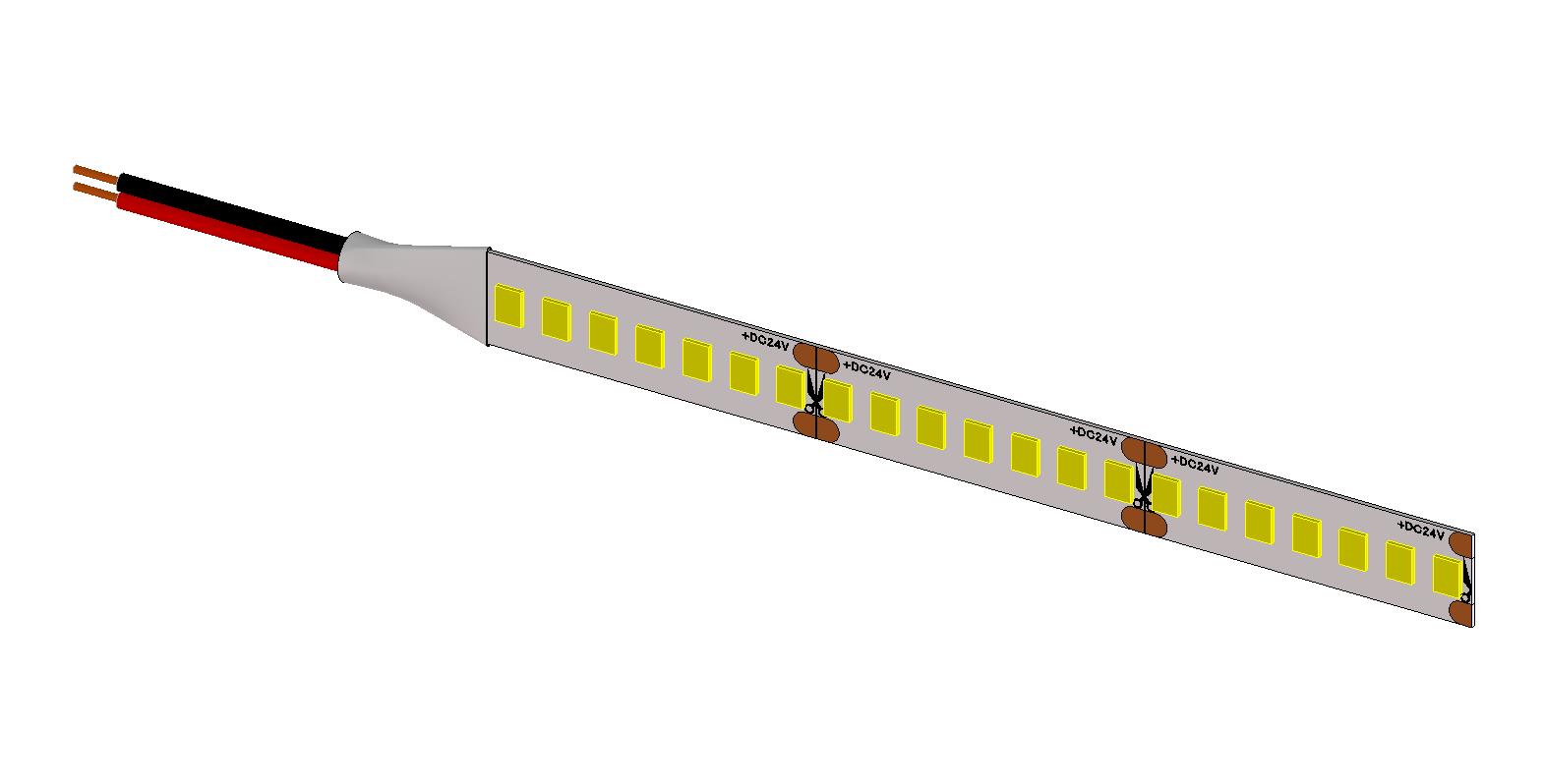 Adatta per applicazioni di illuminazione in ambienti asciutti. La distribuzione dei LED (196LED/m) consente una emissione luminosa costante.