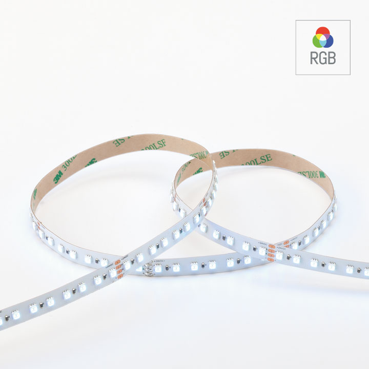 Striscia a LED ad alta luminosità e potenza, in RGB, per applicazioni decorative o illuminazione.