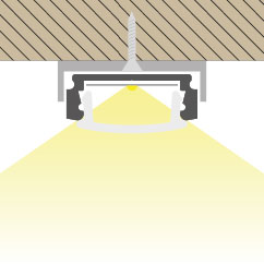 Abbinando il profilo universale PRF080 e gli accessori relativi, si ha la possibilità di ottenere un profilo con passaggio cavi, per il quale sono disponibili il kit per montaggio a parete, a soffitto o a sospensione.